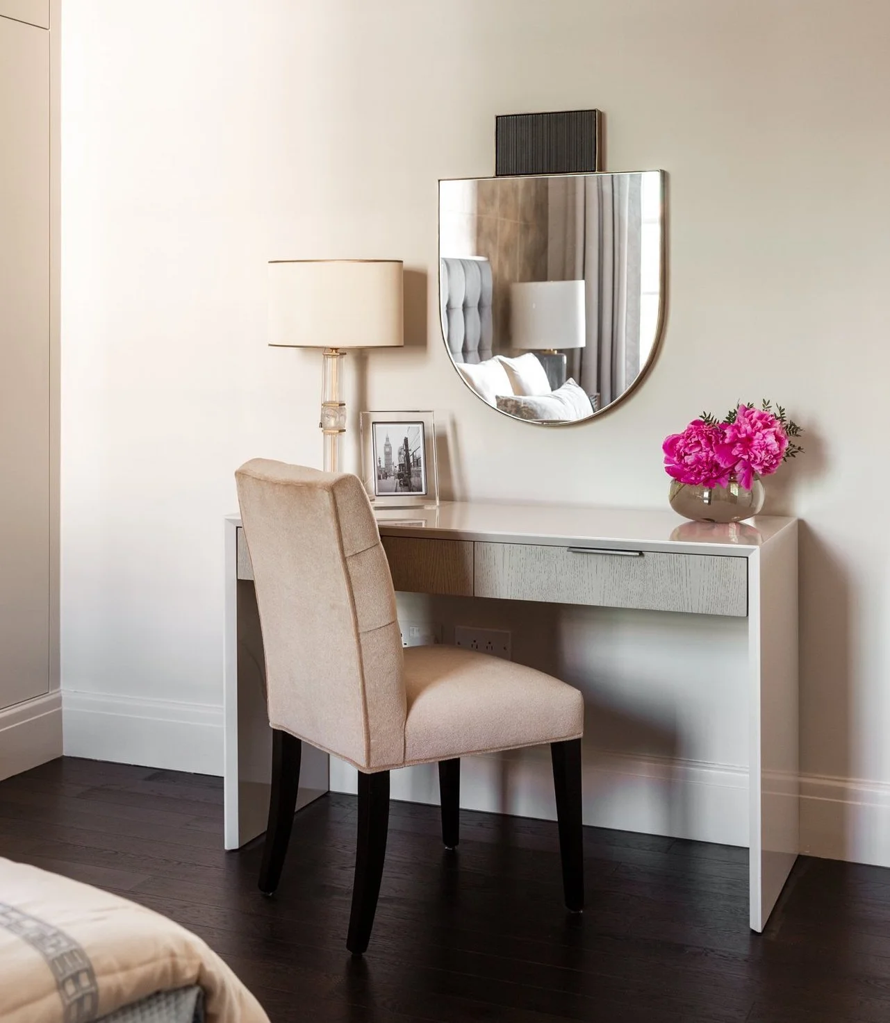 For a London flat I designed, I was able to find several vintage mirrors that were so unique. This large shield design makes a statement, and I loved how the piece narrowed towards the bottom.